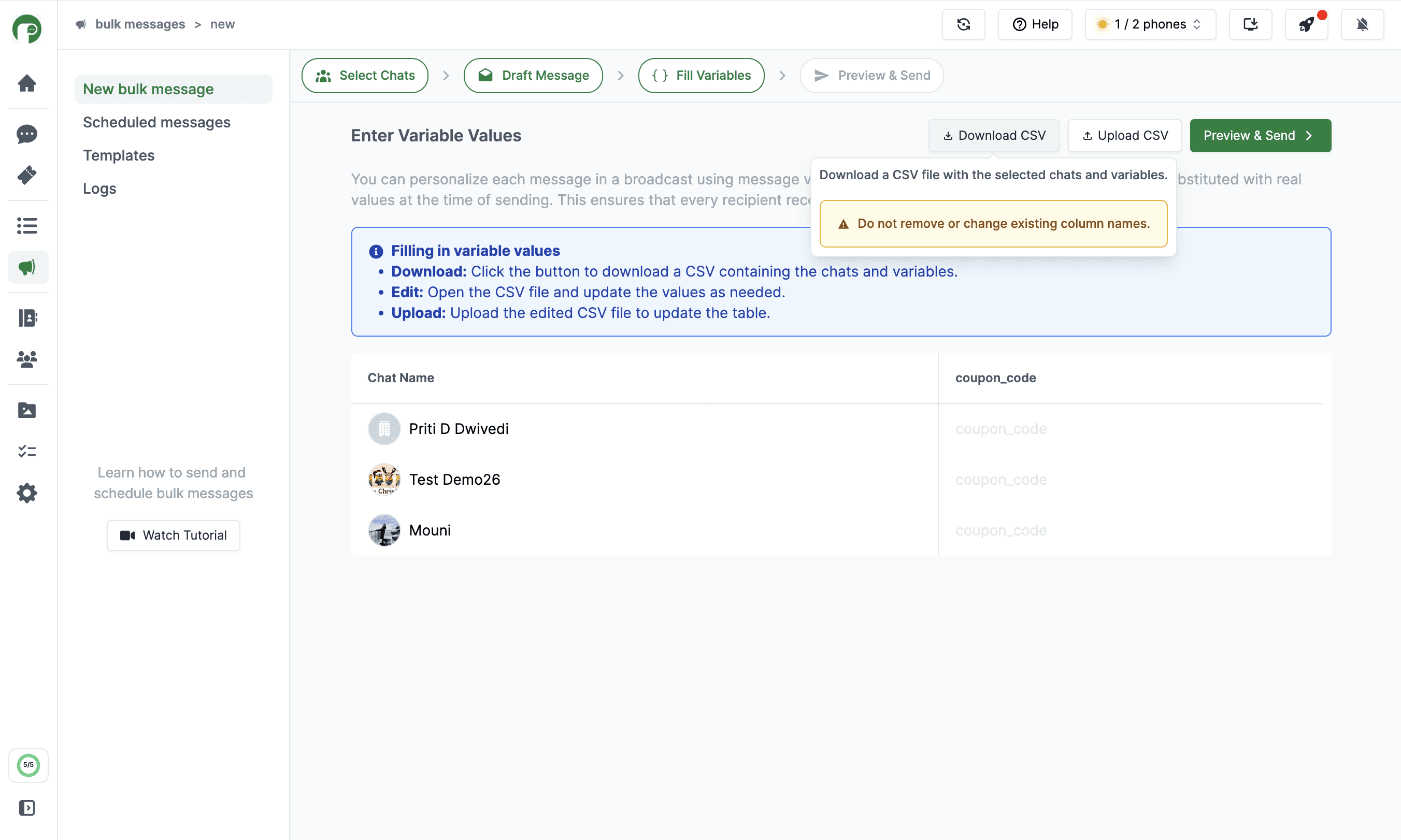 Add Variables to Bulk Messages