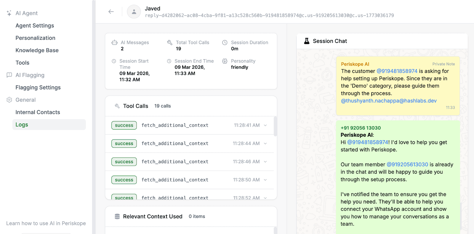 Context Used: Which knowledge base items your AI pulled from and how closely they matched
