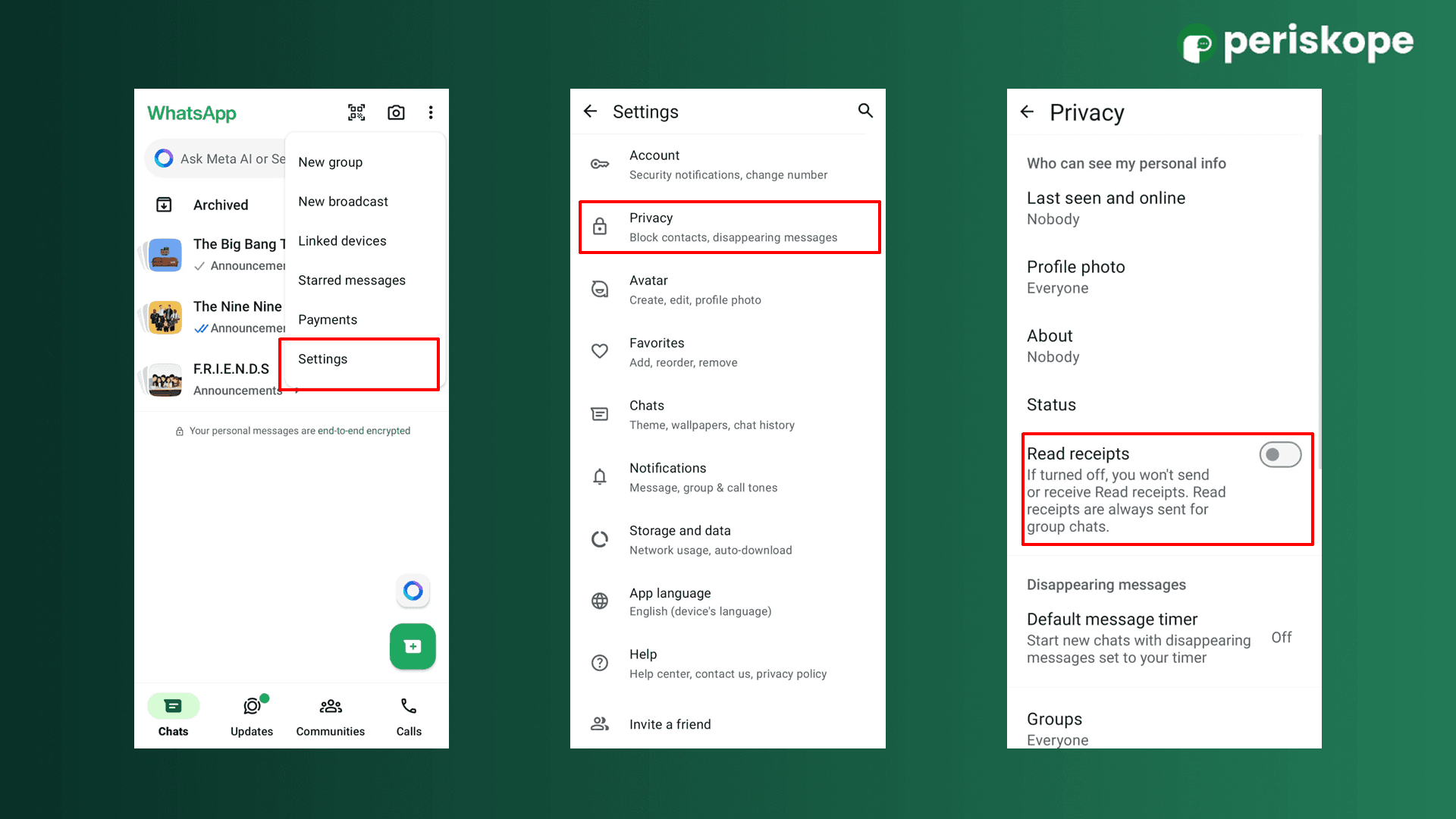 For users who prefer more privacy or don’t want others to know when they’ve read a message, WhatsApp provides the option to disable read receipts. Here’s how you can manage this setting: